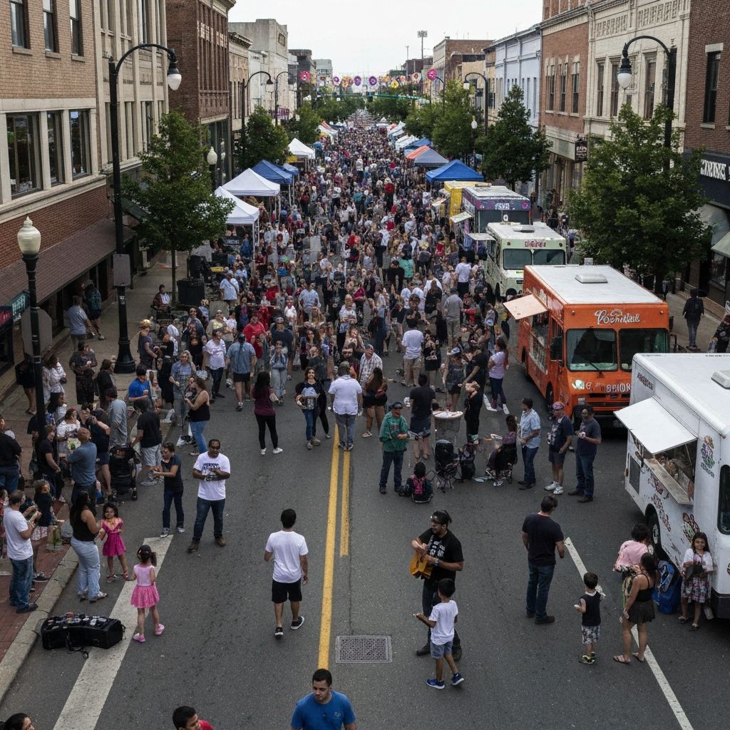 Programming strategies that drive foot traffic, support local businesses, and build community identity.